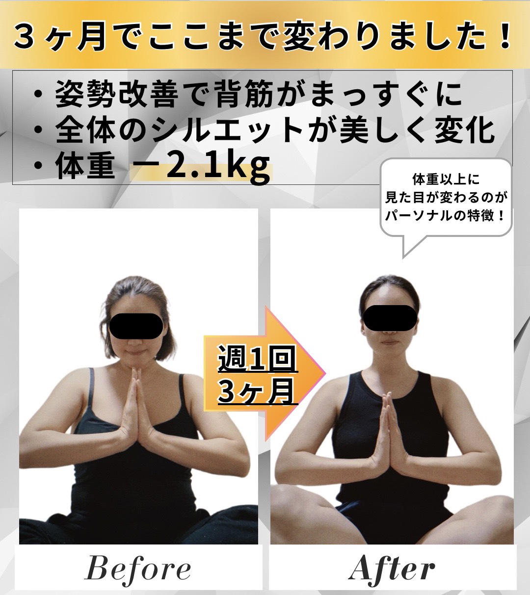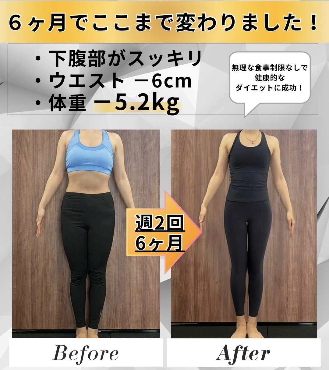 今のお客様の体の状態にもよりますが、2ヶ月で-10kgをされたお客様もいらっしゃいます。ただ、「健康的に痩せる」ことを大前提にしているため、2ヶ月で-10kgするために、無理な食事制限をすることは推奨しておりません。体が生活に必要なのと同様に、栄養も生活に必要だからです。